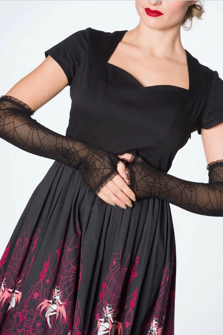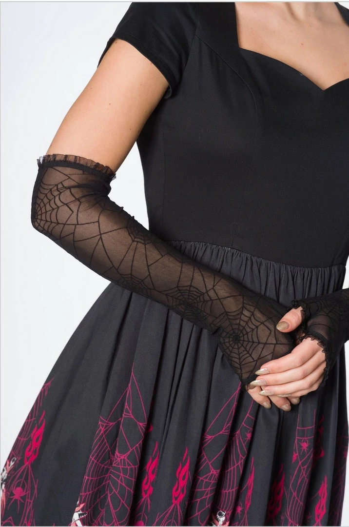 Sheer, mesh fingerless gloves with a spiderweb design.