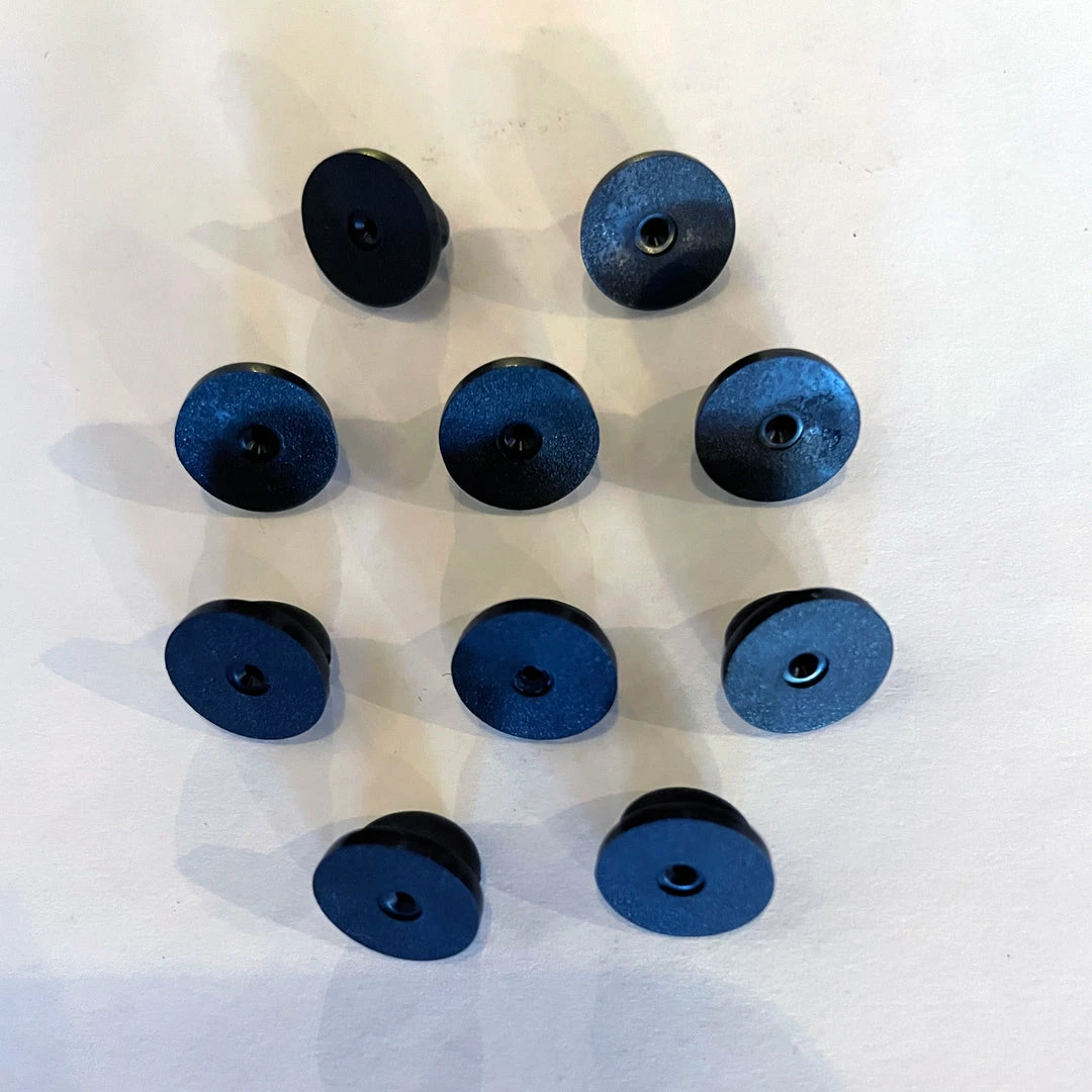10-pack of rubber pin backs for enamel pins or pin badges. Fits a standard 1-1.2mm post.