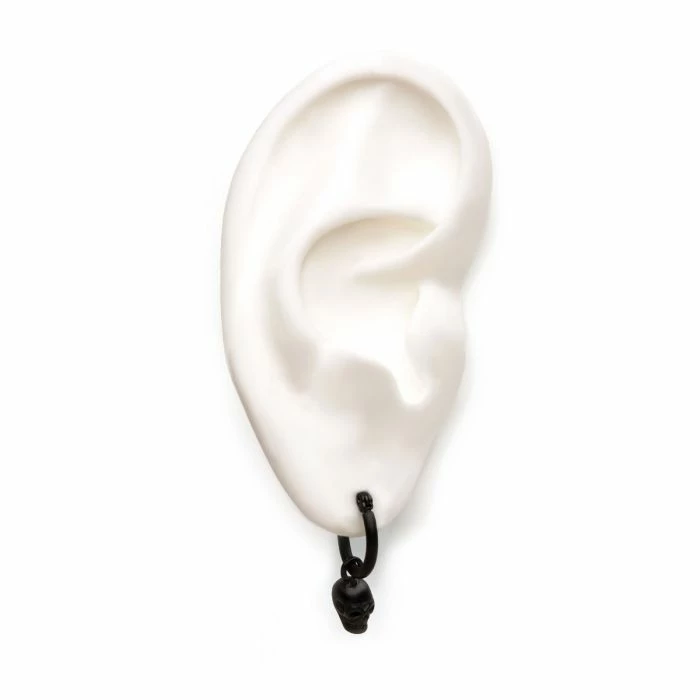 Matte Black Plated Hoop with Skull Dangle Earrings.