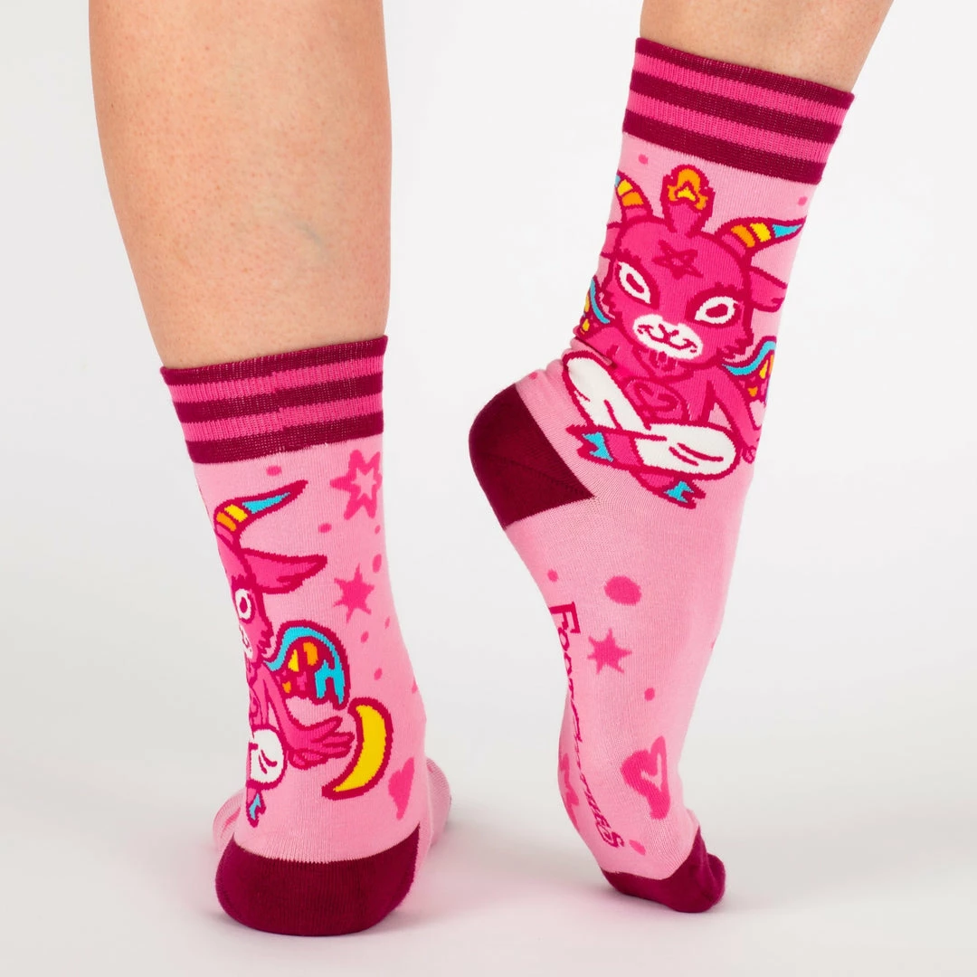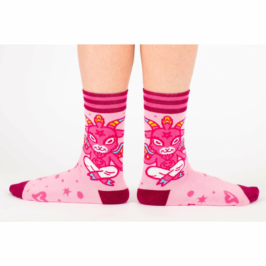 The cutest most evilest socks in all the land featuring an adorable pink Baphomet.