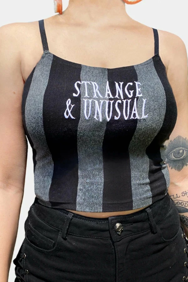 Spooky all year is our vibe. The Strange & Unusual top features fully adjustable straps and a soft stretch fabric that you will love.