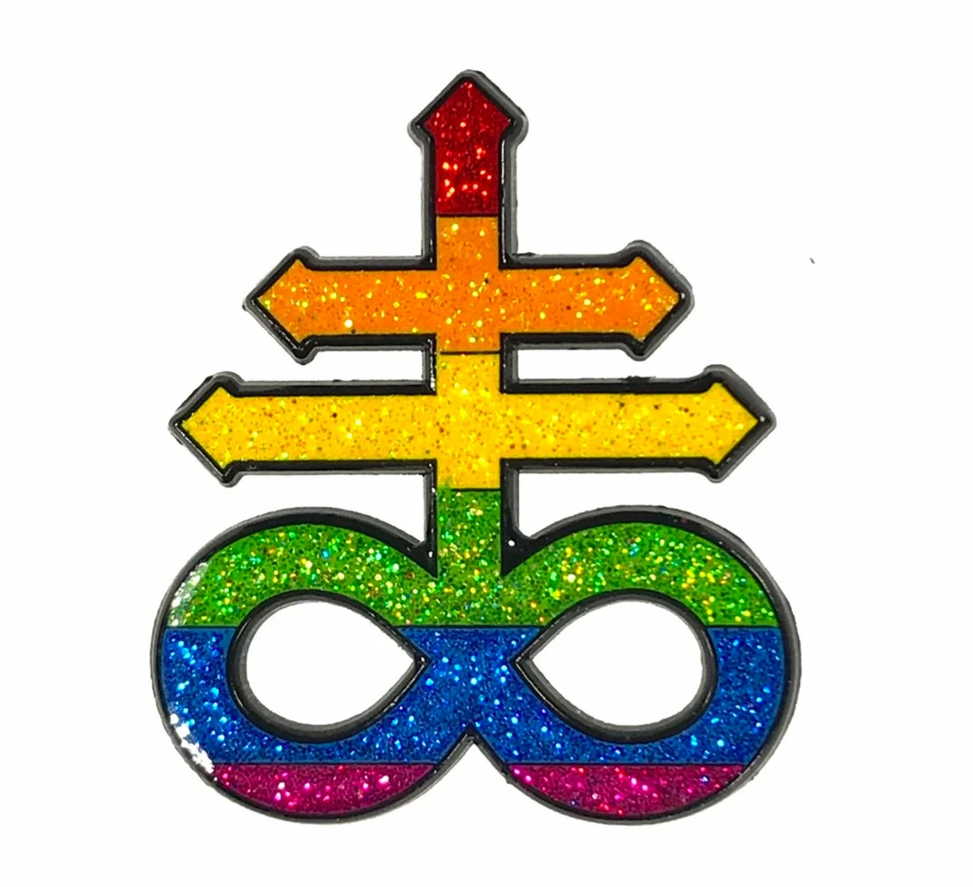 2″ soft enamel glitter pin with epoxy fill and 2 backing nails.