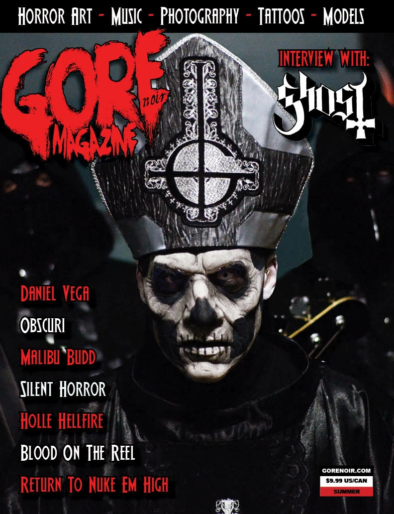 This issue also features interviews with 6 cast members of Return To Nuke Em High! Troma really outdid itself with these films! Need more? We have interviews with Holle Hellfire (photos by Obscuri), We talk with Johnny Daggers about his documentary Blood on the Reel, we introduce horror rockers: Silent Horror, and also feature: Texylvania, Daniel Vega, Malibu Budd, VidVad Scare, Playful Gorilla, and a 3 year Gore Noir Magazine retrospect including Missy D Photography and Grimm.