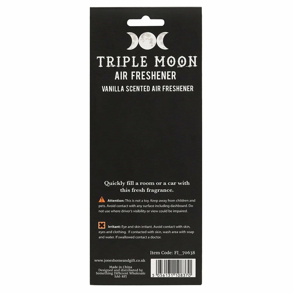 This sweet vanilla air freshener features triple moon design and is perfect for hanging in the car or in a room to create a fresher atmosphere.