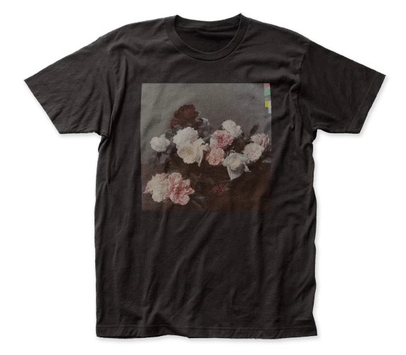 New Order Power, Corruption & Lies album cover design on a black t-shirt.