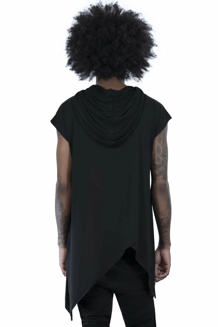 Never boring; the ‘Belial’ vest top is keepin’ it clean and slick; with soft-touch jersey body and longline shape with an asymmetrical statement, cowl neck and oversized hood with drawstrings. A perfect layerin’ piece and wardrobe staple. Hell yeah!