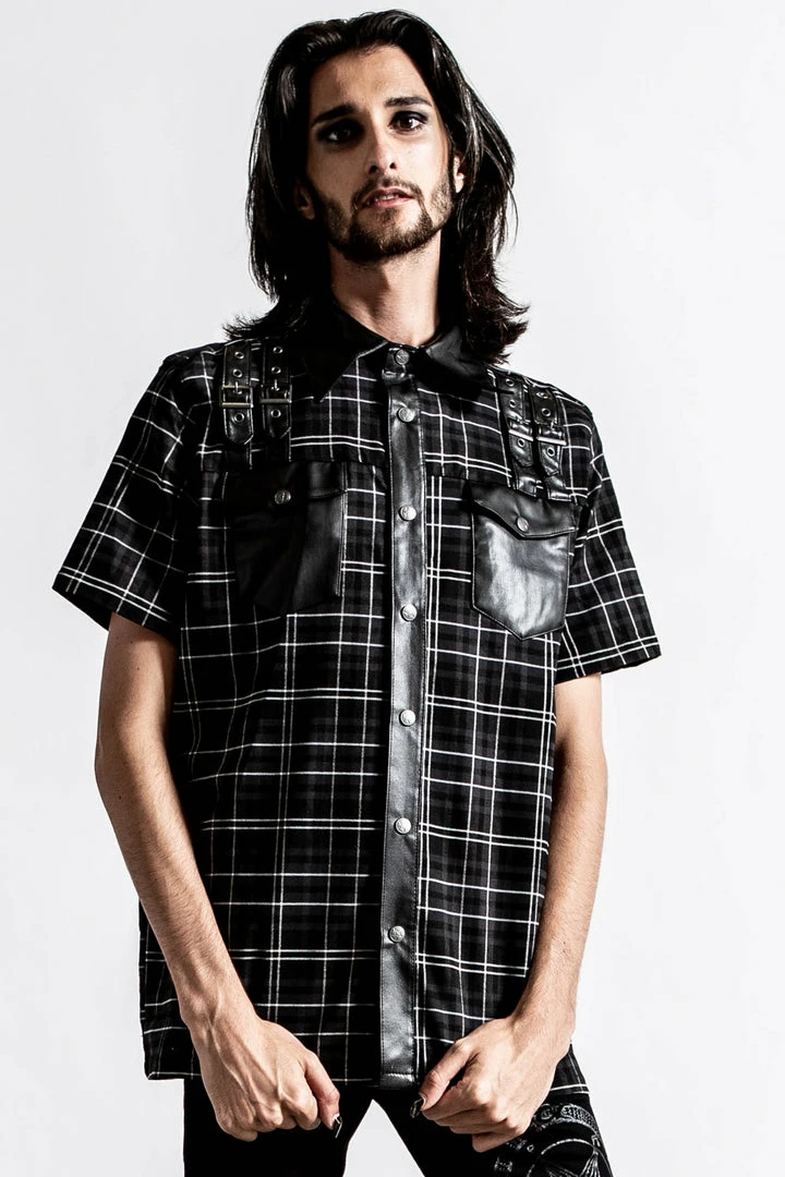 Channel your inner weirdo with our ‘Daze’ button-up shirt. Features a smart button-up front, bold straps with buckles and a tartan design- the perfect mix of smart and magick.