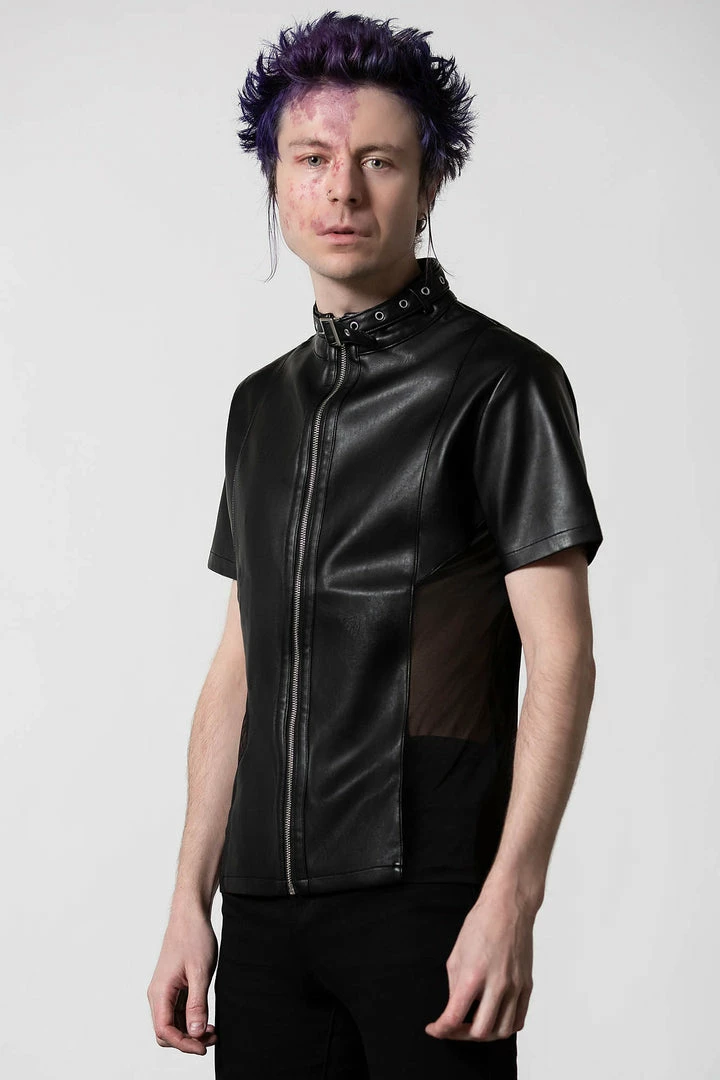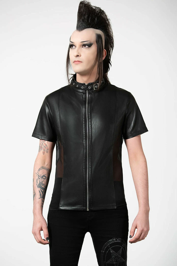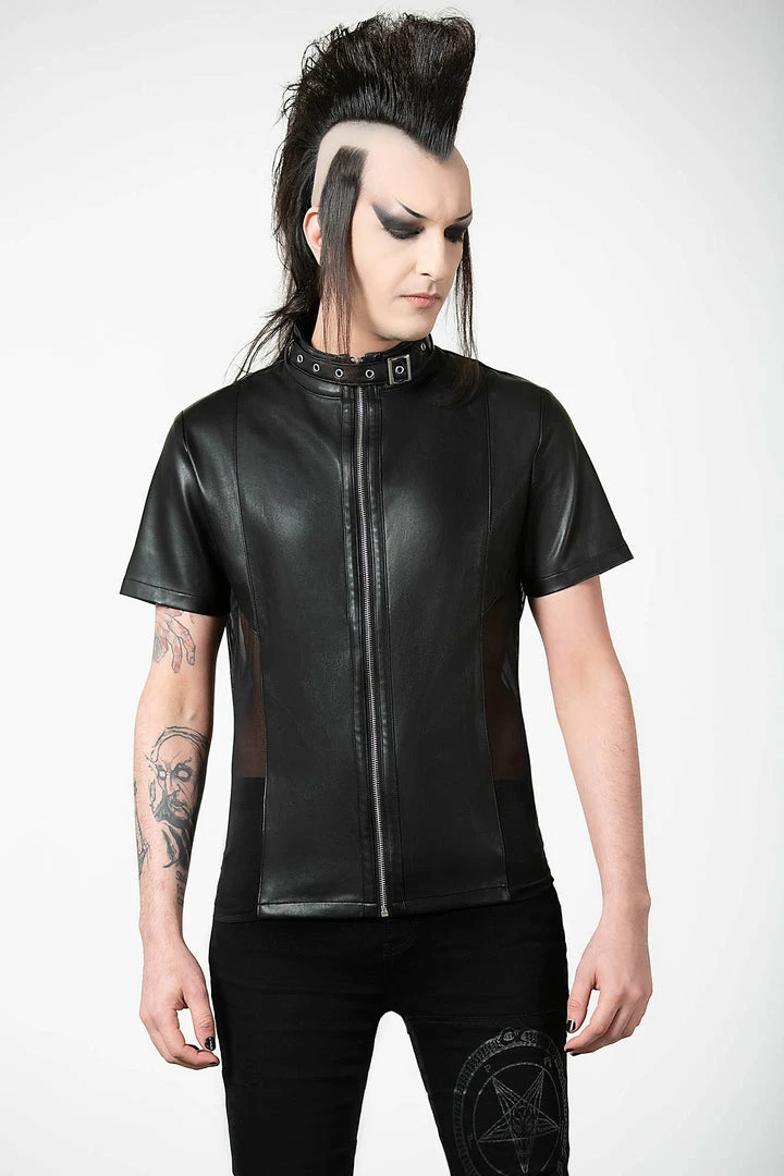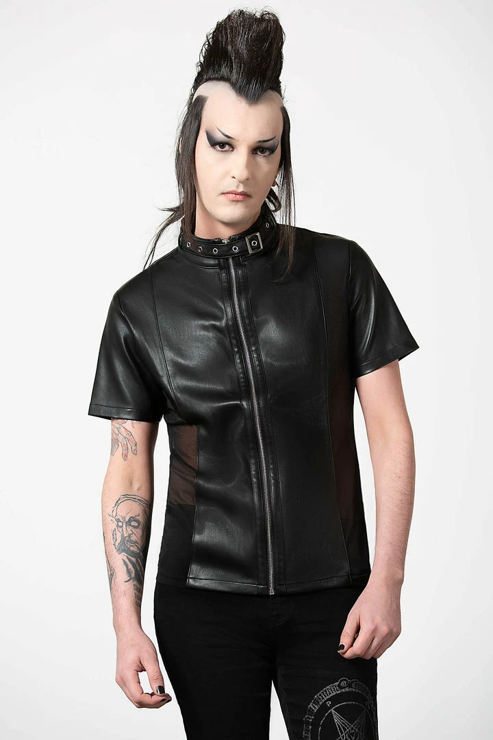 Feel like a god in our ‘Oberon’ zip top. Crafted in luxe, vegan leather with mesh side panels to give the perfect fit. Finished with a high neck, full length zip and collar detail, this is a perfect staple for any ethereal wardrobe.