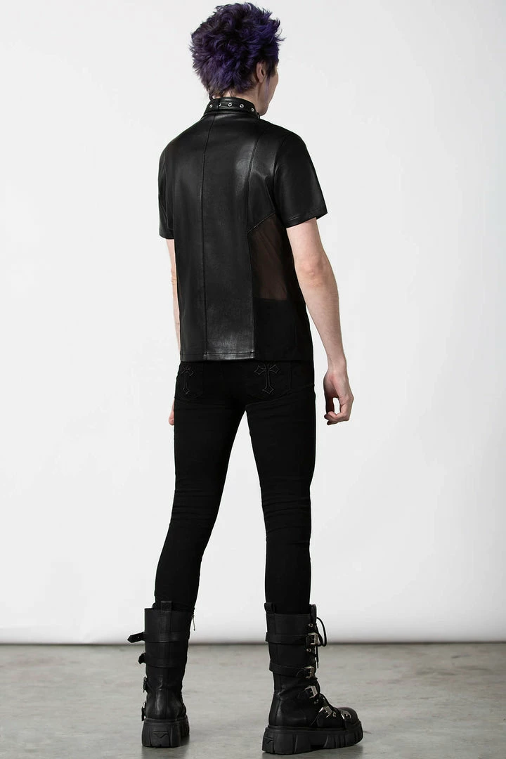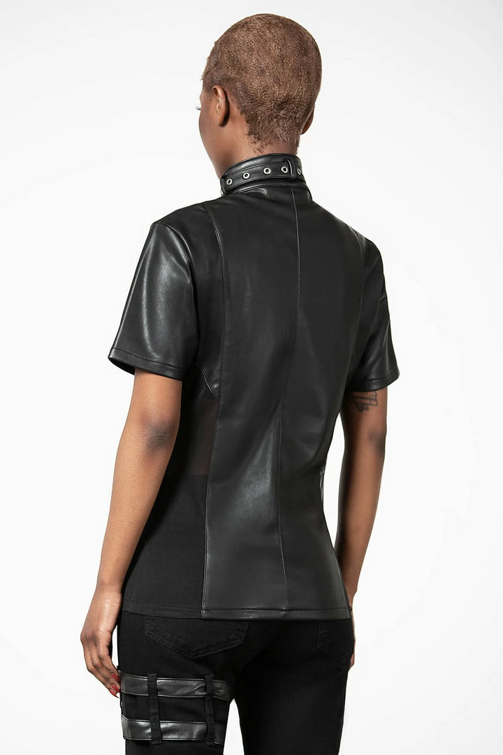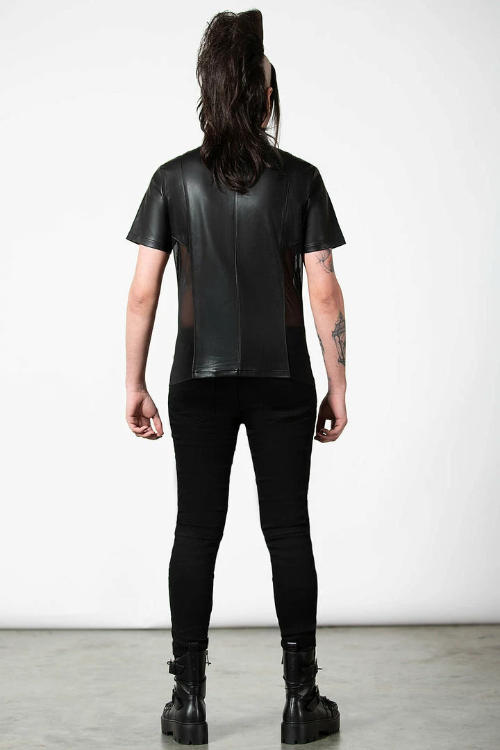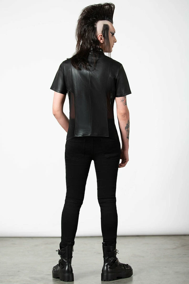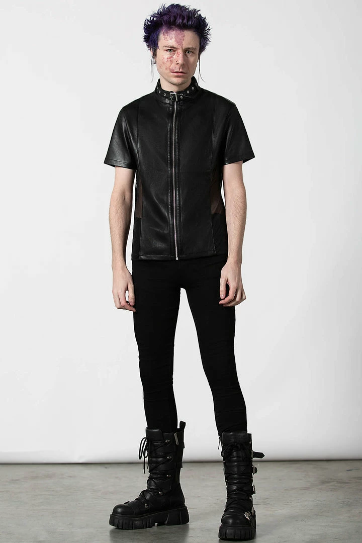 Feel like a god in our ‘Oberon’ zip top. Crafted in luxe, vegan leather with mesh side panels to give the perfect fit. Finished with a high neck, full length zip and collar detail, this is a perfect staple for any ethereal wardrobe.