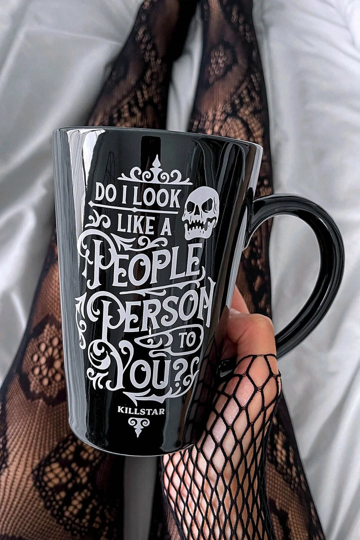 Tell folk how you feel while enjoying a brew with our âPeople personâ tall mug. Large in size to account for your caffeine needs with a statement contrast graphic and a black gloss finish.
