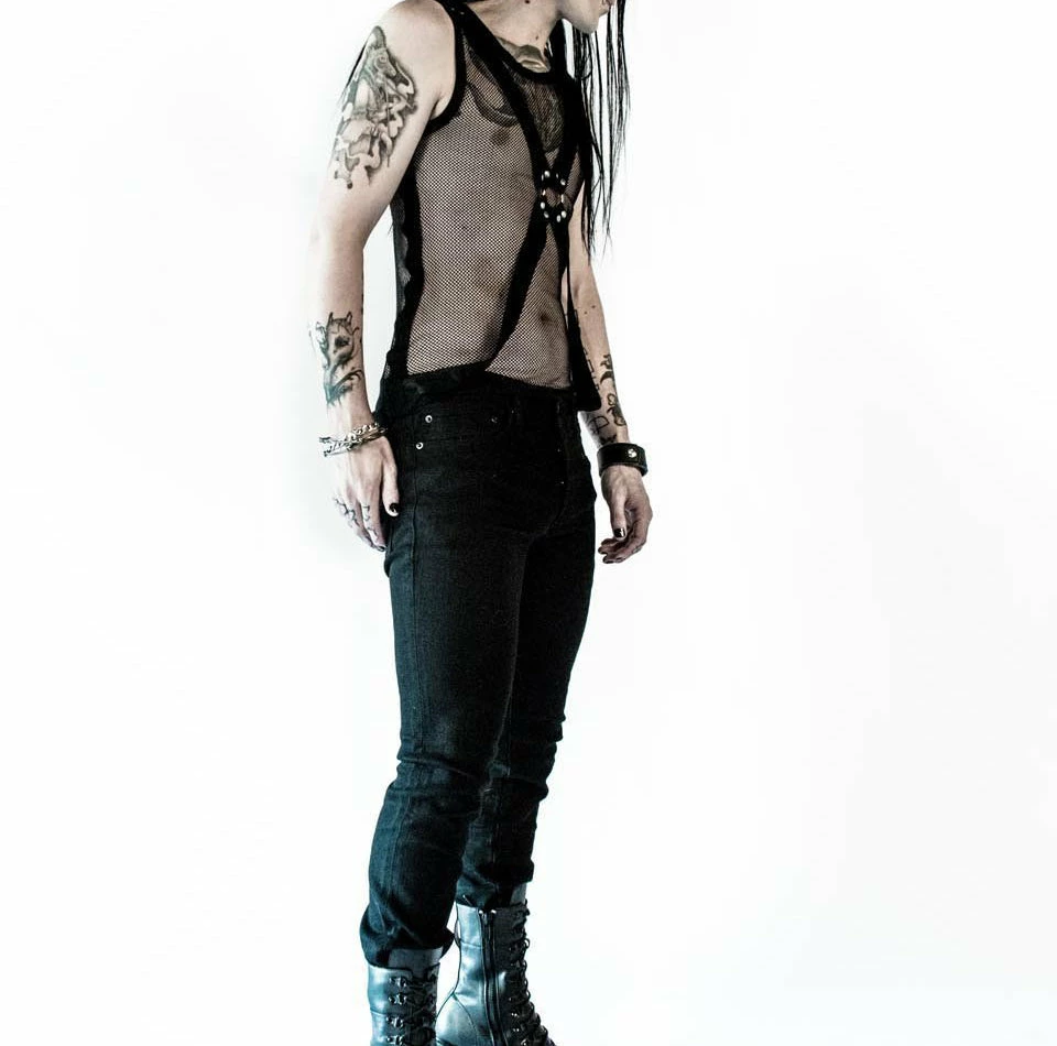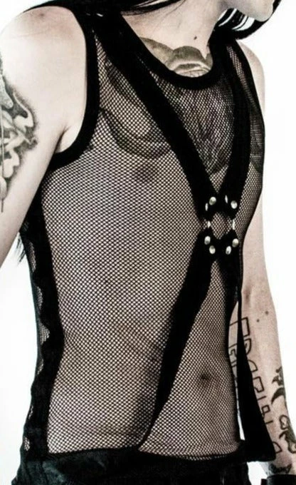 Lip Service Classic Sleeveless Fishnet Shirt in Black w/ Bondage Details. Rock, Goth, Industrial, Fetish or Whatever You Want to Be!!