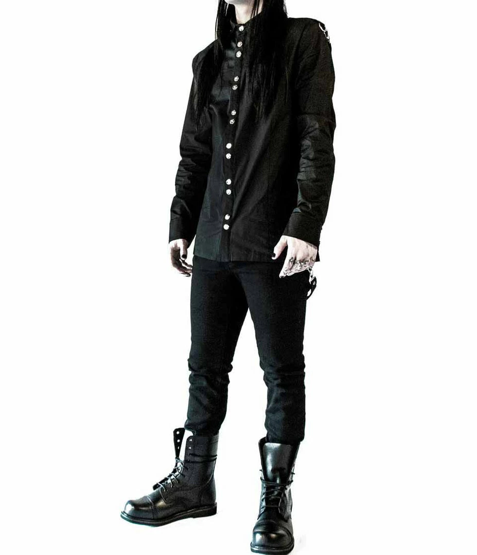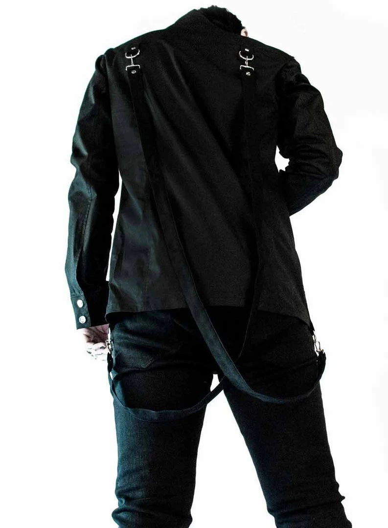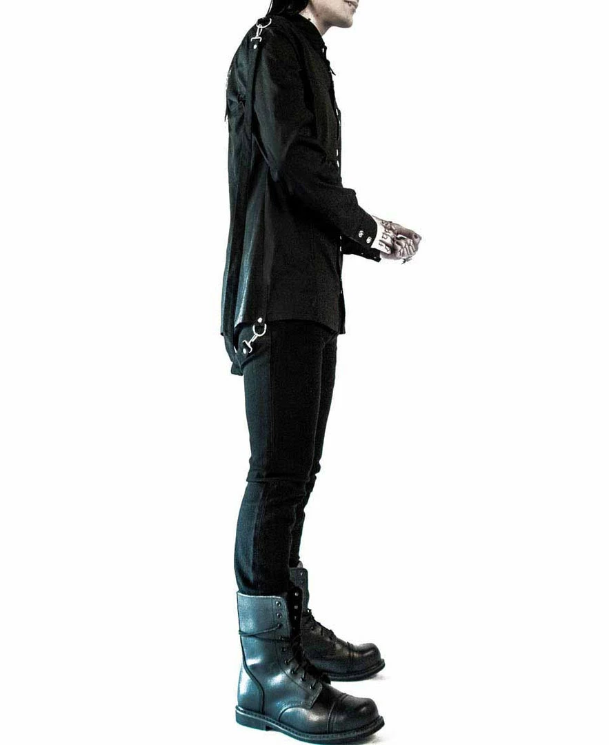 Lip Service Long sleeve poplin shirt in Black. This classic snap front stretch shirt with removable straps will add just enough rock to your day and will let you go straight from work to the club!!!