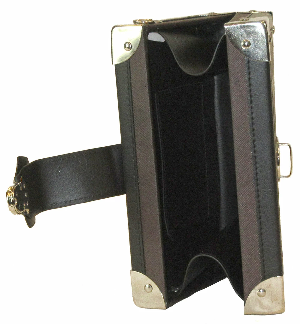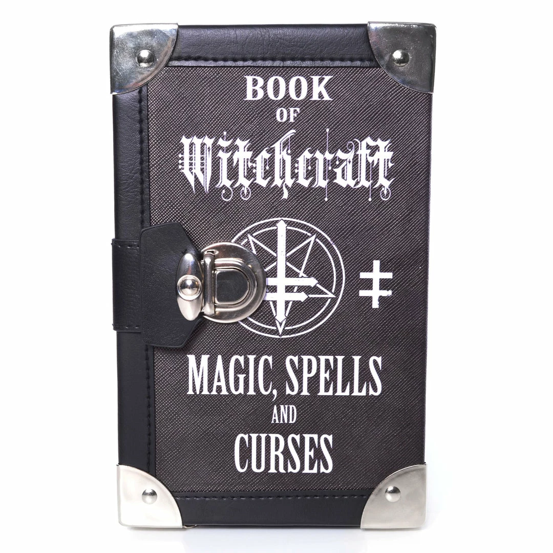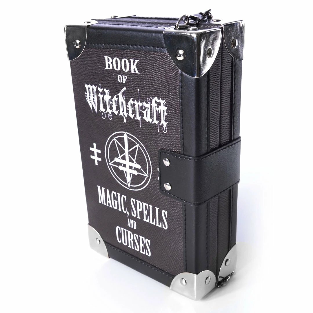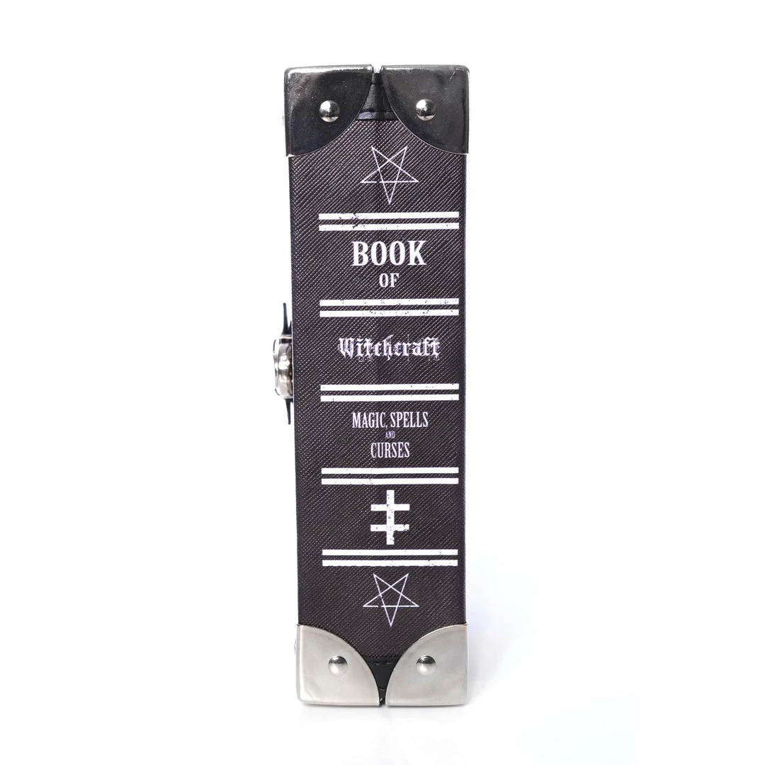 Book of Witchcraft black bag. Rigid like a hardcover book, with detachable metal strap.