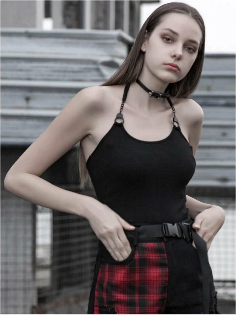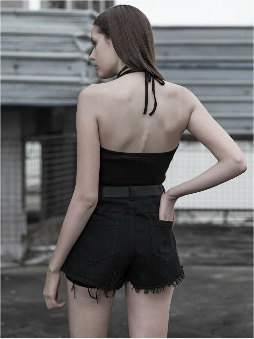 Sin City Top by Punk Rave with handcuff accents and ties around the neck.
