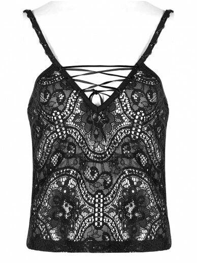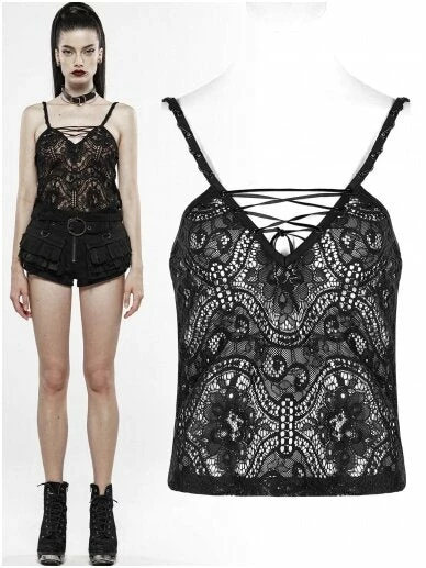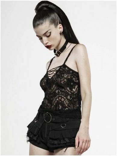 Black Opium top by Punk Rave. Short black lace top with straps and lacing on the front.