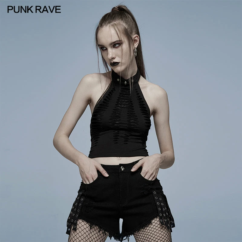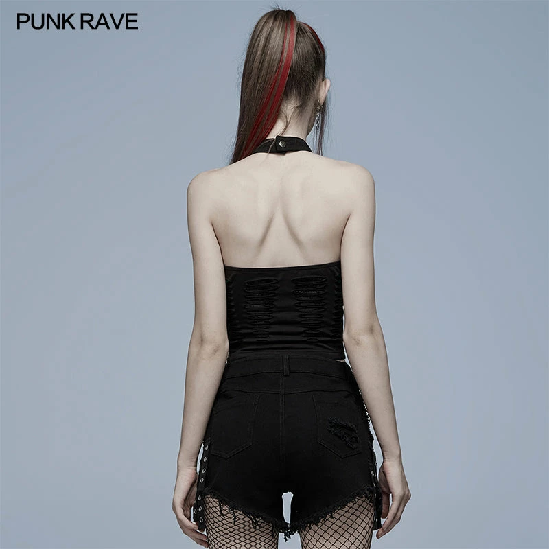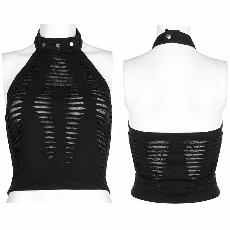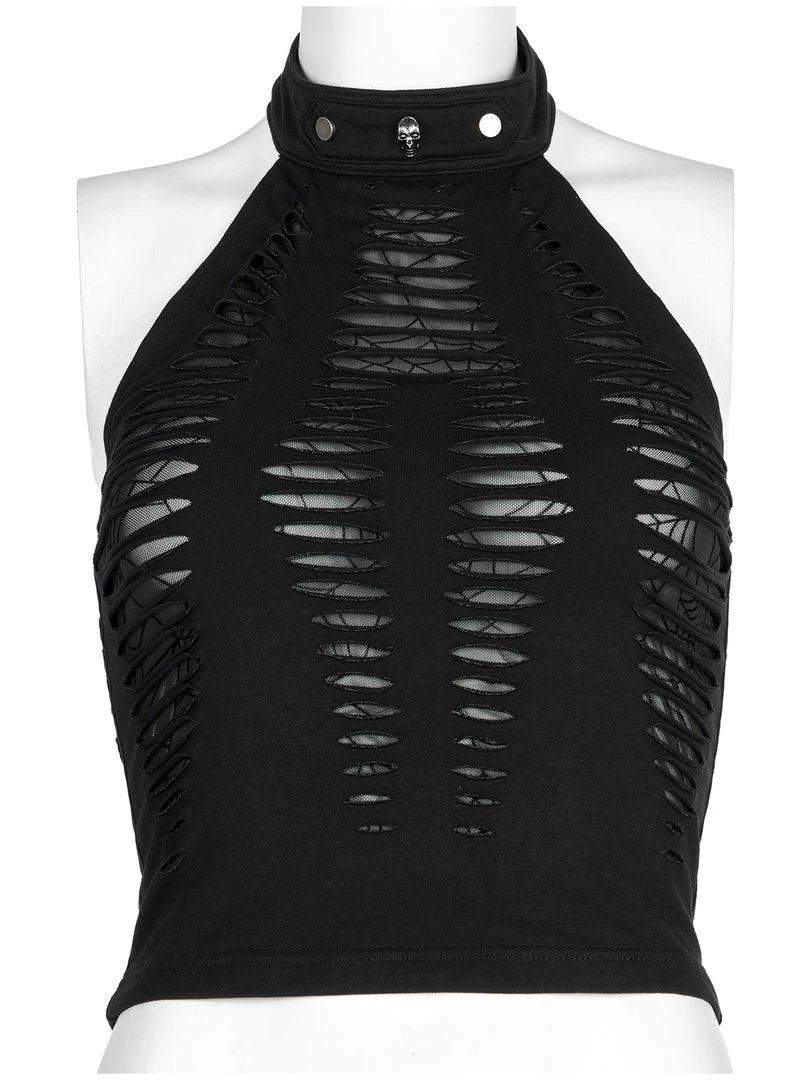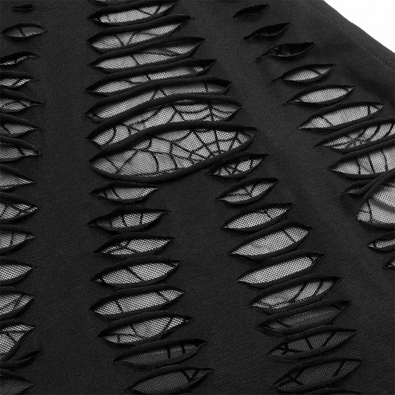 Amazing stylish stretchy fitted black top from Punk Rave. This gorgeous top features spider web mesh with a spliced black fabric overlay. This top is attention catching and beautiful and also feature an adjustable neck collar for the perfect fit and hollowed out back for extra impact.