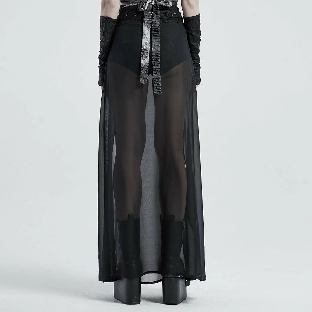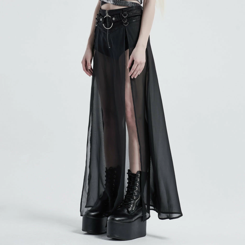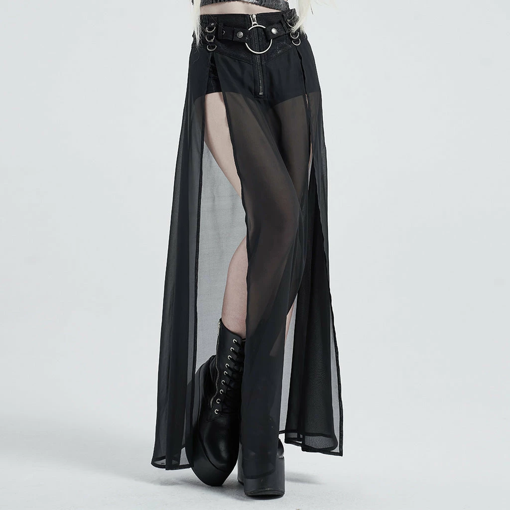 The Raising Hell Skirt is made out of sheer, see-through polyester mesh and features black cotton and spandex mix shorts. This two-piece style design is completed by it’s textured matt polyester denim waist and embellished with silver metallic hardware, branded O rings and straps at the waist. Fasten with its front zipper.