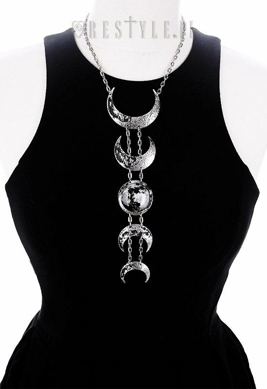 Crescent long pendant, occult jewellery, luna “LUNAR SILVER NECKLACE”