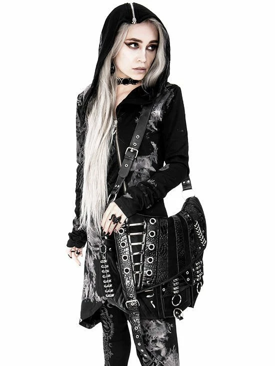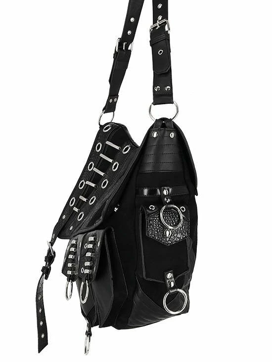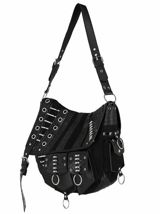 Black, gothic hobo bag with pockets
