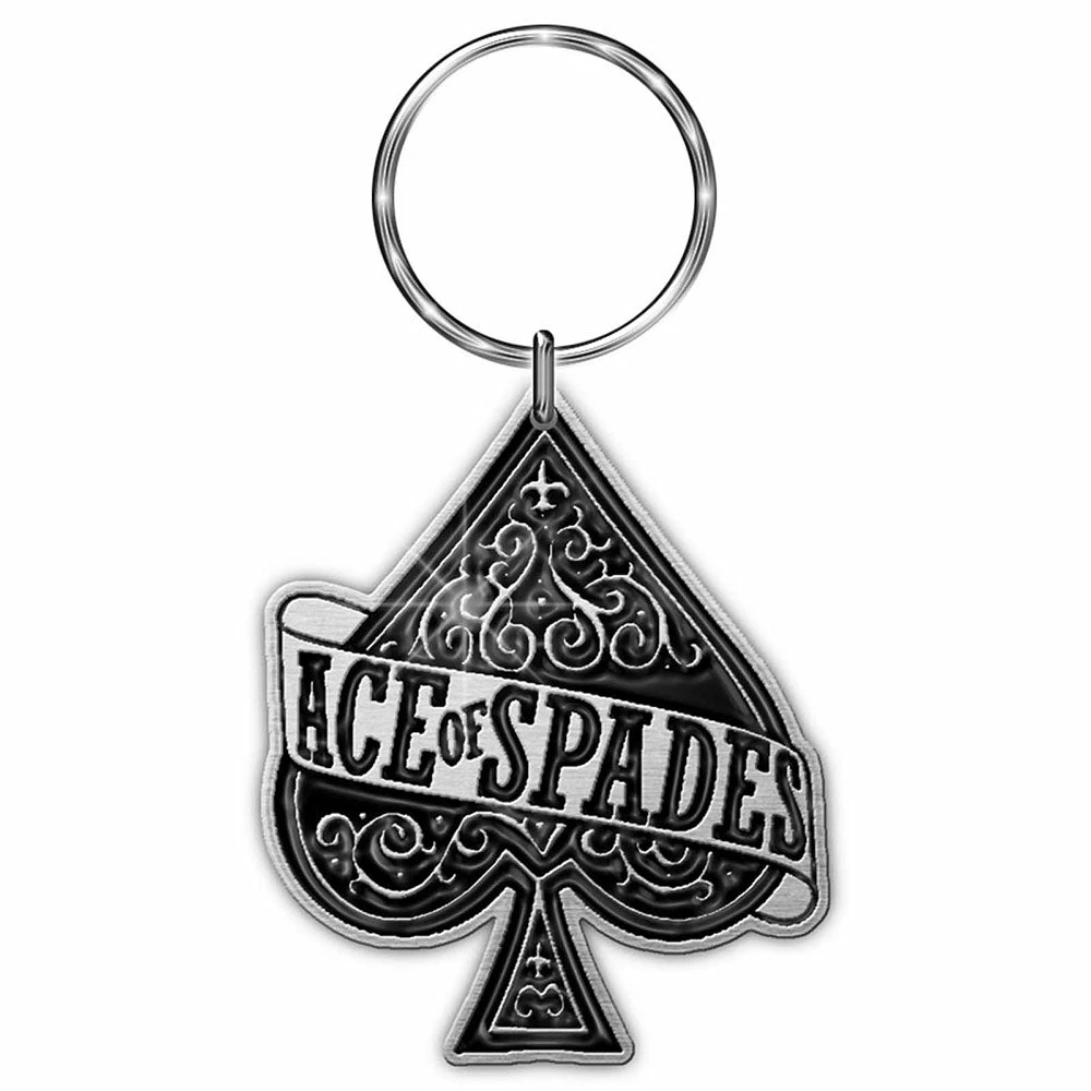 An official licensed Keychain featuring the Motorhead ‘Ace Of Spades’ design motif. Metal die-cut keyring with resin enamel in-fill and key loop.