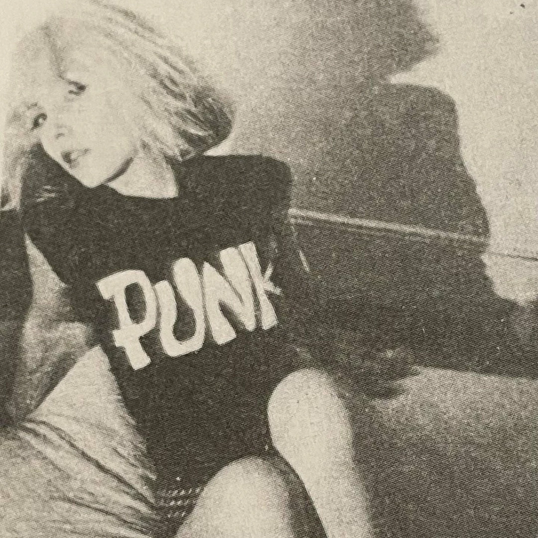 The original PUNK Magazine logo tee. A collaboration with John Holmstrom, the founder and editor of PUNK Magazine and illustrator of the covers of the Ramones albums Rocket to Russia and Road to Ruin.