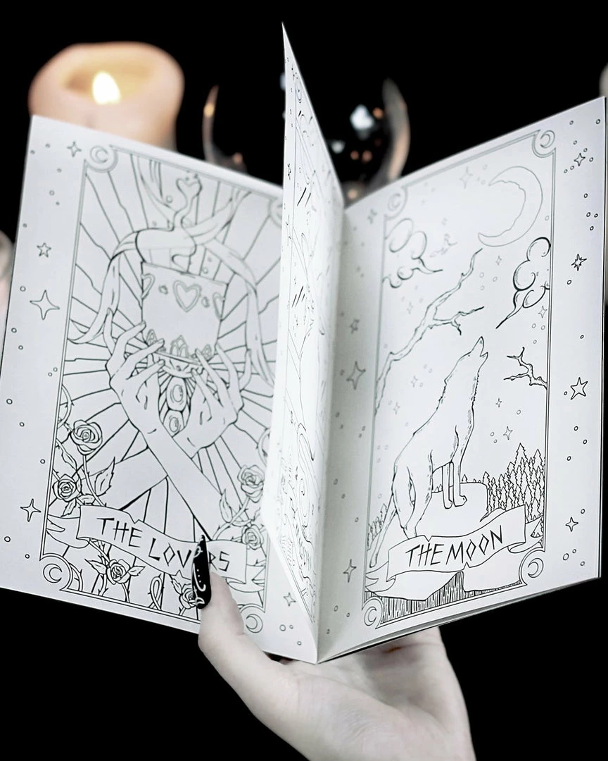 Use this Tarot Coloring book for joy and peace of mind, light your sage and colour away the stress of today.