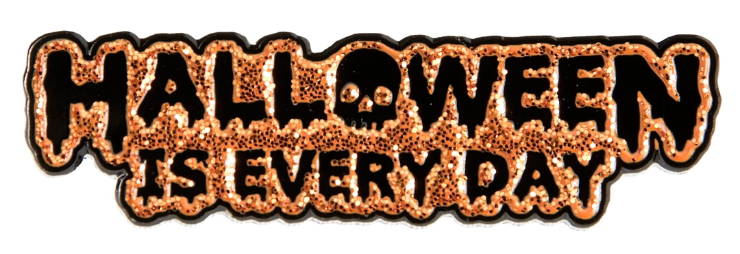 Enamel Glitter Hallowen Is Everyday Pin by Sourpuss. Halloween happens just once a year? Pssssh! You know that Halloween is Every Day! Spread the word and convert those non-believers with our Halloween is Every Day enamel pin.
