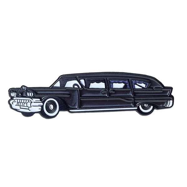 Take a ride to the other side in style with this Hearse enamel pin! Perfect for lovers of all that is creepy and morbid, just pop onto your favorite vest, jacket, or bag.